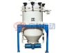 Filtering Machinery For Juice Internal net rack picture This Self-moving Discharge Dregs And ltering Machinery is ideal filter equipment used in solid-liquid separation courses including industries of grease, chemical, light industry, food and medicine. 1. Application and features 1) Compact structure to save space; 2) Good effect of filtration; 3) Dregs are discharged by machines so that labor intensity is low and productive efficiency is high. 4) Parallel connection of several machines can achieve continuous processing. 2. Specifications and parameters: 1) Filtration area: 4/8/10/15/20/25/30/40/50/60/80/90 m2; 2) Design pressure: 0.49 Mpa; maximum working pressure: 0.45 Mpa; testing pressure: 0.613 Mpa; 3) Design temperature: 150°C; Vibrator parameters: air pressure: 0.45-0.6 Mpa; vibration frequency: 3000-4500/min We can improve and specially manufacture products according to clients' need. 3. Operational principle: This machine is filter press equipment. A filter pump will pump the solution, going through an inlet pipe, into a tank until the tank to be filled. Under the effect of pressure, the solid impurity of the solution will be trapped by a filter screen and will form a filter cake, and the filtrate will flow out of the tank, going through a filter tip and an outlet pipe, and thus the filtrate will be clear. With the increase of filtration time, the trapped solid impurities and the filter cake's thickness will increase, so that filtration resistance will increase, leading to the increase of inner pressure of the tank. When the pressure reaches some level, the impurities should be discharged. You should stop pouring the solution to the tank, and then blow compressed air into the tank through overflow pipe. Afterward, press the solution into another filtering machine or container, blow-dry the filter cake, shut down the compression air, open the butterfly valve, start the vibrator to vibrate the filter leaf, in order to drop the filter cake and discharge it from the discharging hole beneath the tank. 4. Brief introduction of structure: Tank, elevating gear, vibrator, filter leaf, butterfly valve and pressure display